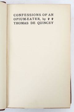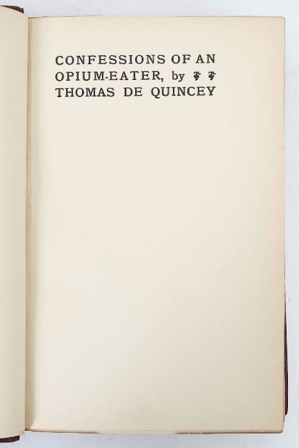 DE QUINCE, Thomas, Confessions of an Opium Eater, 8vo, signed by author on board MHS Lusitania, hardback leather over marbled boards, blind stamp title and authors name to spine, with raised bands, a limited edition copy 557 of 925, with a distinct signature 'Elbert Hubbard' and on front end paper an ownership inscription 'Gertrude M Faulding, January 1903', printed on quality paper blind stamp to C M Fabriano