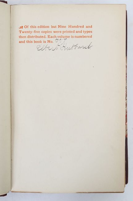 Elbert Hubbard (1856-1915) was an American writer and publisher, who died aboard the HMS Lusitania, in his mid life he engineered a community, under the name Roycroft, featuring residences and shops, that focused in the printing of leather bound, hand illuminated books, as well as pottery, baskets and other such artistic values.'