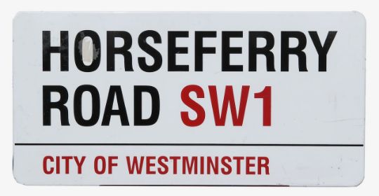 An enamelled iron street sign for Horseferry Road SW1, City of Westminster