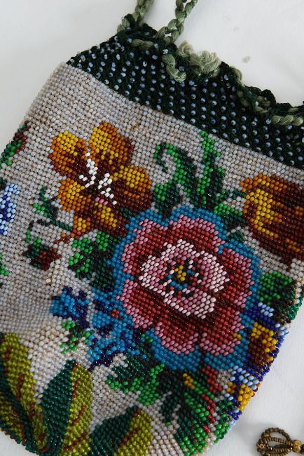 Beaded purse) For a similar example, see the V&A Museum Collection, no. T.1196-1913 and T.1183-1913 in the V&A East Storehouse.