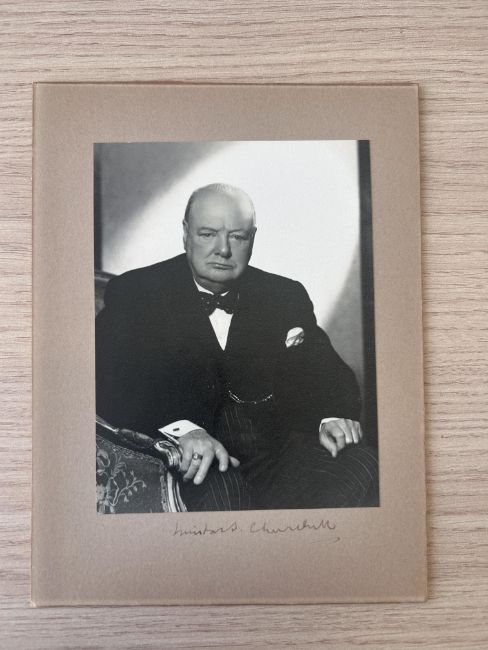 Winston Churchill: a signed photograph and Christmas card