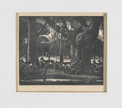 three woodblock prints, 'Wood Nymph', 'Persephone', and 'Deer in Richmond Park' (3)
