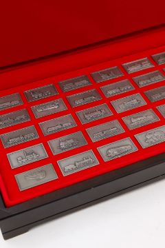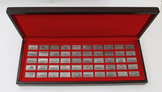 comprising 50 pewter ingots, to commemorate the inauguration of the National Railway Museum 27th September 1975, in a fitted case