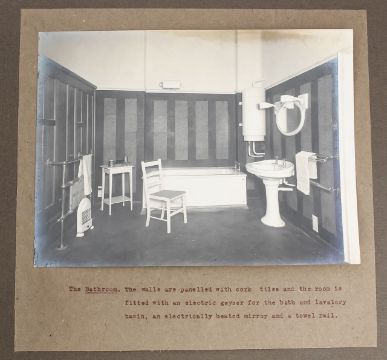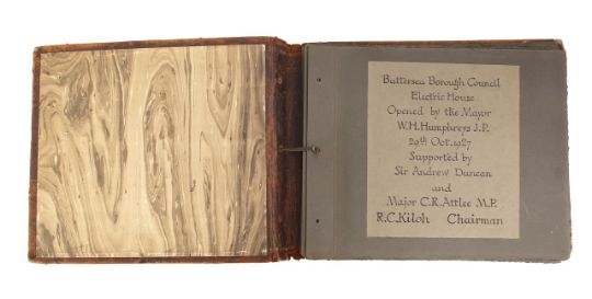 a collection of photographs and ephemera relating to the showcase house, compiled to commemorate the opening, with hand-written frontispiece detailing ceremony and VIP attendees, with fifteen external and interior photographic images, also programme, plan and cuttings, accompanied by typed descriptions, in gilt titled leather bound presentation file.