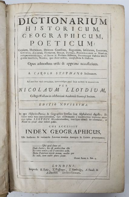 DICTIONARIUM, Historicum Geographicum, Poeticum