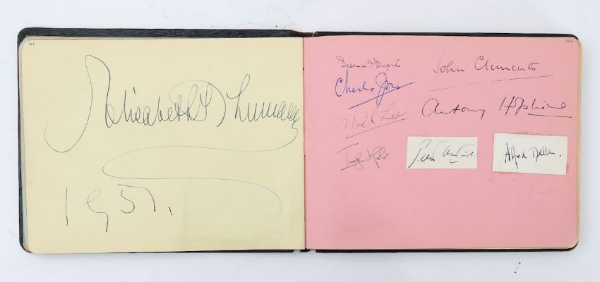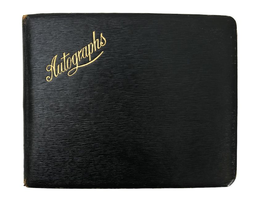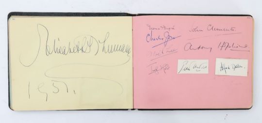 An autograph book, including Clementine Churchill, actors, cricket players and musicians