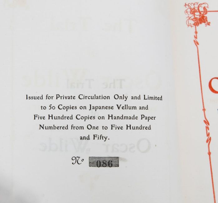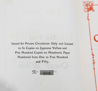 The Trial of Oscar Wilde, 1st edition, issued for private circulation, number 086 of 500 copies (on handmade paper)