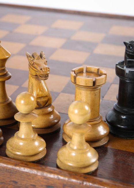 A Jacques style boxwood chess set and board