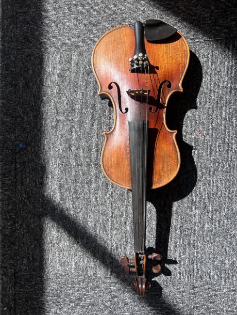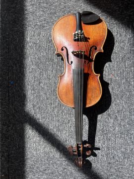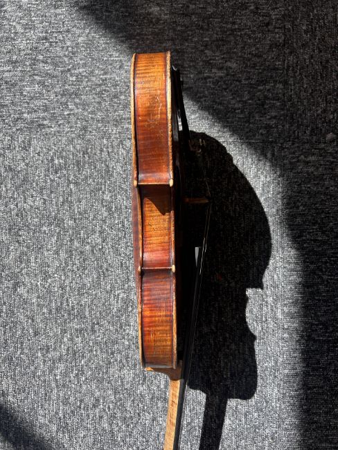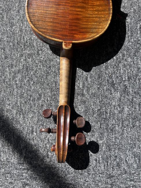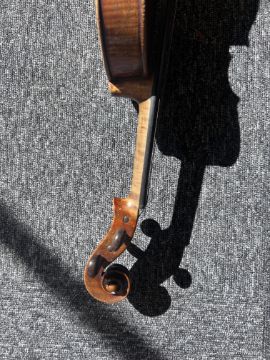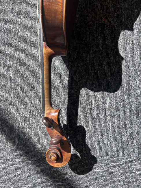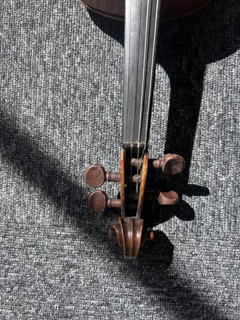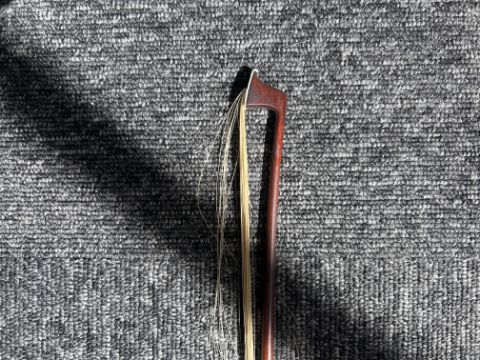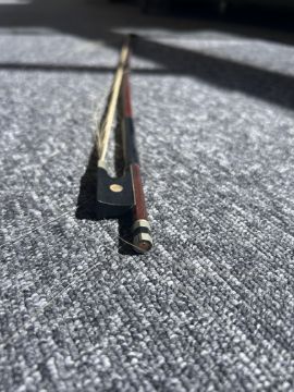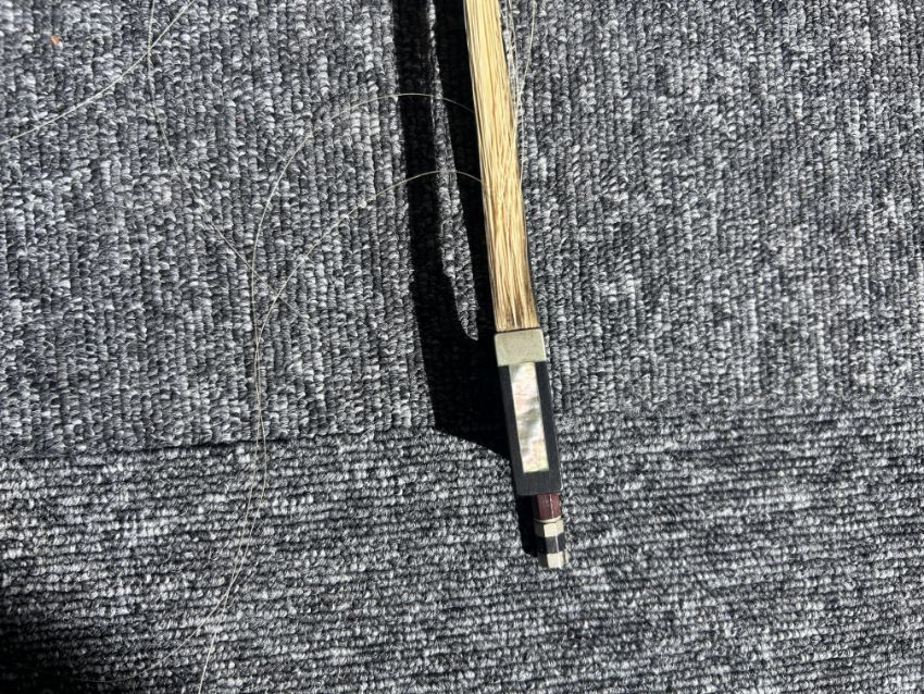 Condition: The hairs to the bow are frayed, with losses. Knocks, scratches and wear throughout commensurate with use. The strings need changing. With resin and spare strings.