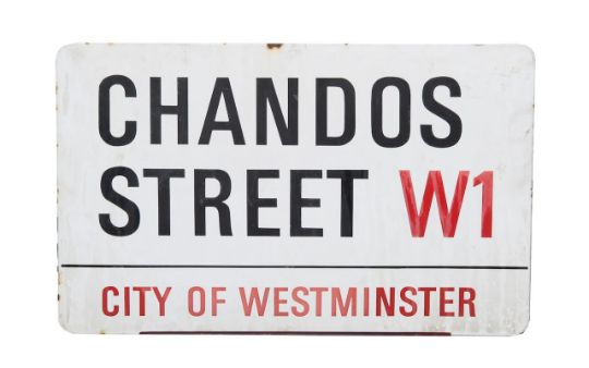 An enamelled iron street sign for Chandos Street W1, City of Westminster