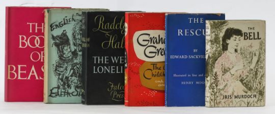 to Include The Bell by Iris Murdoch, Chatto & Windus, first edition, The Rescue by Edward Sackville West, Secker & Warburg, first edition, The Well of Loneliness by Radclyffe Hall, Falcon Press, first edition The Book of Beasts by T.H. White, Jonathan Cape, first edition, and The English Eccentrics by Edith Sitwell, Faber & Faber, first edition, All 8vo with attractive original pictorial paper dust jackets (6)