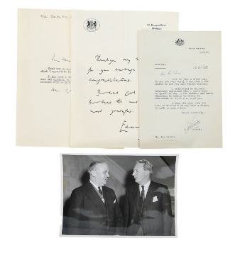 together with a press photograph of Ken Pearce and Edward Heath, and a signed letter from Australian Prime Minister Sir John Gorton, on Canberra Prime Minister embossed paper, inscribed 'Dear Mr Pearce, This is just a brief note to say how very sorry I was that I was unable to see you last Friday morning... I hope the next time you come to Australia we may have a chance to talk to each other' (4)
