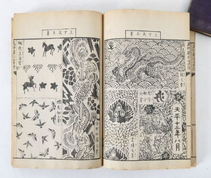 and SENRYUDO GAFU, illustrated woodblock book by Takizawa Kiyoshi (1879), 8vo (2)