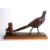 An early 20th century cold painted spelter pheasant table lighter, formed as strutting pheasant on a naturalistic ground, with tree stump containing striker, on a wooden base. 31.5cm long . Tail cracked, ears a little worn, otherwise reasonably good condition.