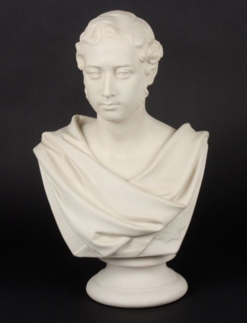 A large Copeland Parian ware bust of Prince Albert Edward, Prince of Wales, circa 1683 by Marshall Wood, the reverse of the bust fully incised with title and Art Union of London. 32cm high . Good condition with no damage.