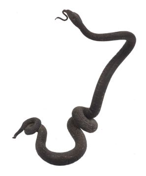 A bronze watch holder in the form of a snake, the coiled snake realistically modelled with projected tongue for hanging pocket watch, 16cm high . Some rusting but overall in good condition