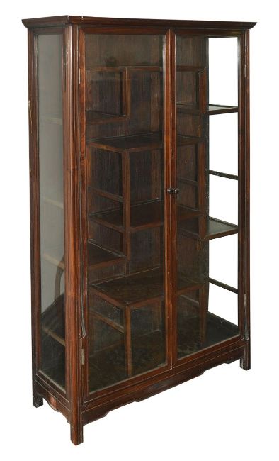 A Chinese hardwood display cabinet, with glazed doors opening to reveal display shelves, height 149cm, width 98cm . Appears to be in good overall condition