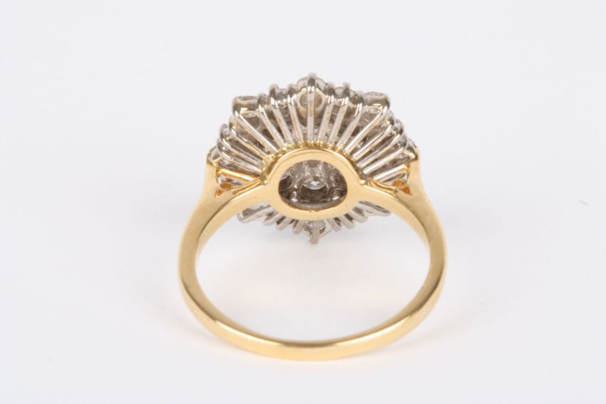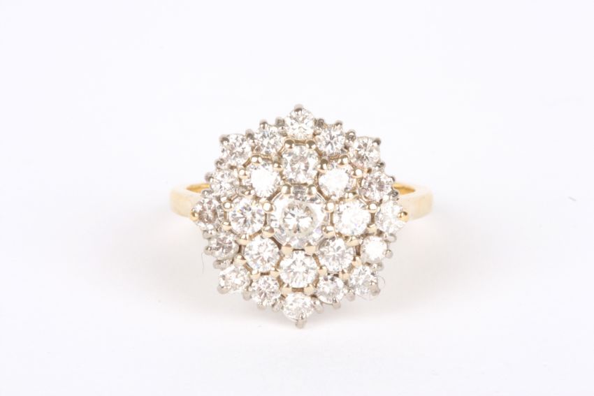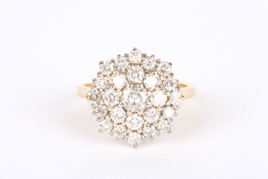 A Modern gold diamond cluster ring set with numerous brilliant cut diamonds, in claw setting Dimensions: Size 'N'Condition reportIn good overall condition