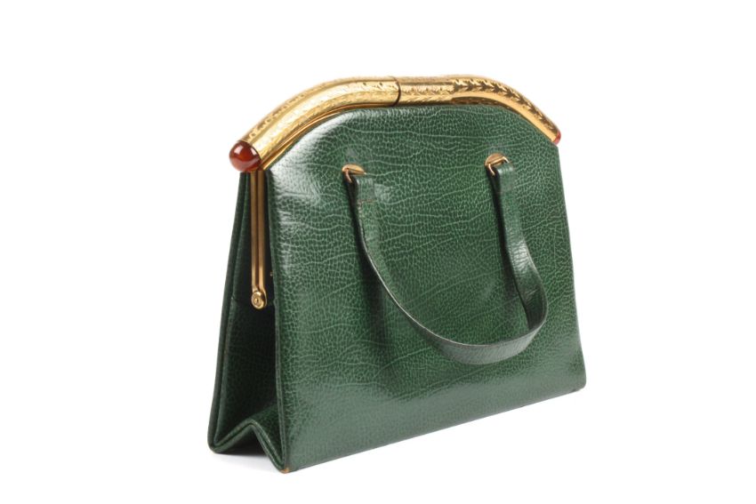 A Deco dark green leather ladies hand bag with snap fasteningDimensions: width 23.5cmCondition reportAppears in good condition with minimal wear
