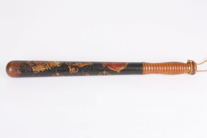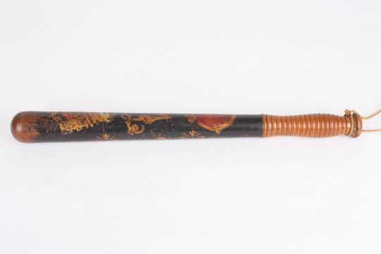 A Victorian painted policeman's truncheon by William Parker with painted Royal VR cypher and inscribed 'Constable', with ribbed grip, the pommel stamped 'Parker 233 Holborn'.Dimensions: 45 cm long.Condition reportSome paint wear, no major damage.
