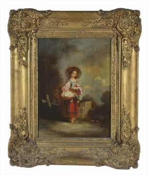 Circle of George Chinery 'A Chinese girl holding a basket of eggs' oil on panelDimensions: 33 x 23cm.Condition report