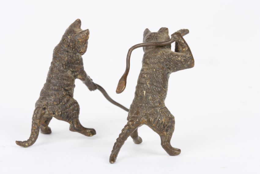 Two early 20th century Austrian cold painted amusing bronze cats both in a standing pose and playing golf.Dimensions: 3.75 cm high.Condition reportSome bending to the clubs, but doesn't seem to be any damage.