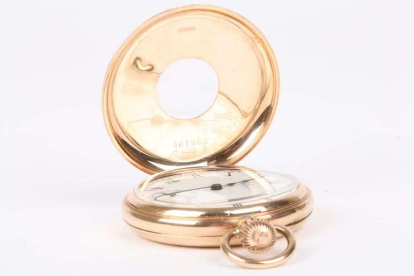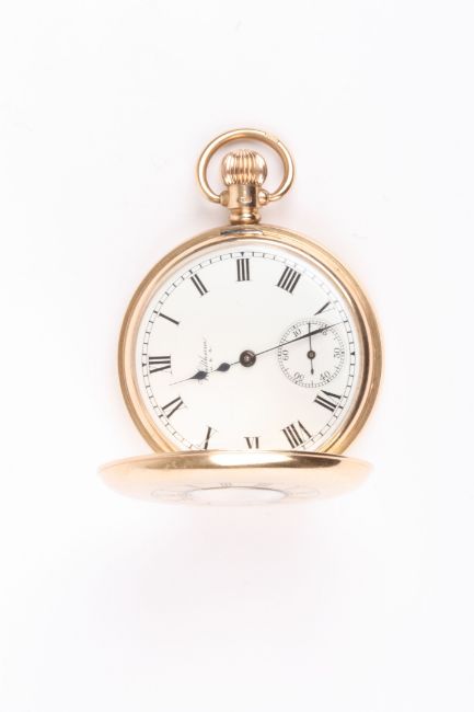 A 9ct gold half hunter pocket watch the enamel dial with Roman numerals inscribed Waltham USA, with subsidiary seconds, the outer case with enamel Roman numeralsDimensions: Condition reportGood overall condition, movement not tested