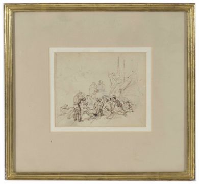 Attributed to George Chinery 'Figures on the deck of a boat', pen and ink Dimensions: 11 x 214cmCondition report