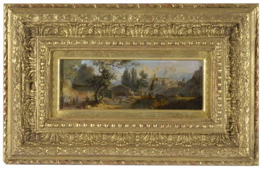 Italian School, early 19th century, late 18th century 'Figures by a waterfall', and another, a pair of paintings on glassDimensions: 7 x 20cmCondition report