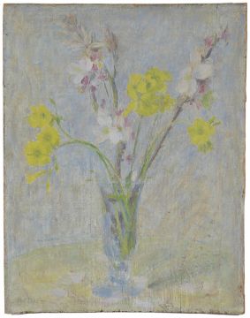 Dod Procter RA (1892-1972) Oxalis and almond, oil on board, signed in pencil lower left. Dimensions: 44 x 34cmCondition reportCurved panel but can be straightened.ProvenanceExhibited Arts Council Great Britain. Exhibition of Penwith Society of Artists inscribed on reverse