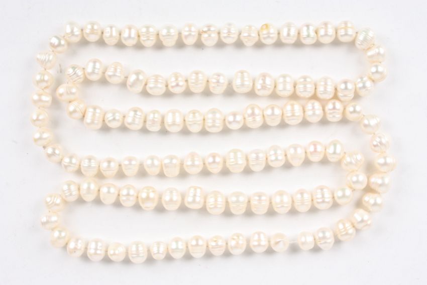 A long cultured baroque pearl necklace the pearls of ribbed form, each approximately 8-10 mm diameter.Dimensions: approximately 100 cm long.Condition reportGood condition