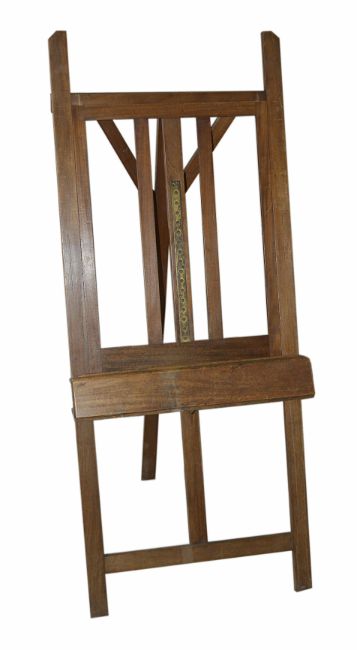 A large adjustable mahogany easel with paint brush rest, and storage for paints and brushes.Dimensions: height 153cm., width 62cmCondition report