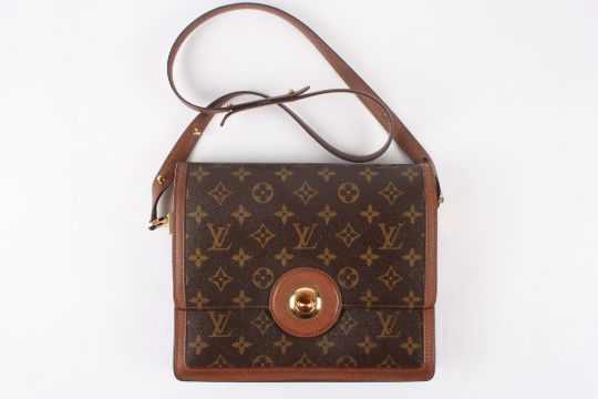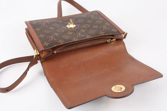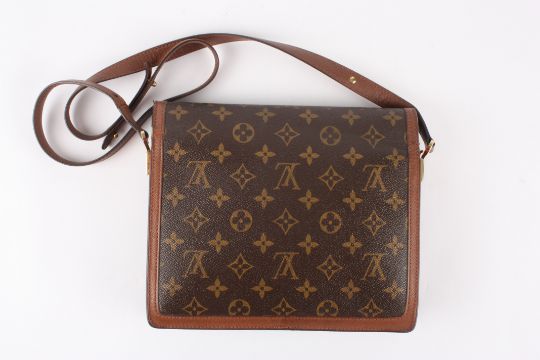 A Louis Vuitton Raspail shoulder bag with monogram canvas and treated cowhide leather trim. One adjustable shoulder strap. Flap opening with a turn lock and two compartments with a zip pocket inside. Dimensions: 25cm by 20cmCondition reportFairly good condition overall but with a pen mark inside.