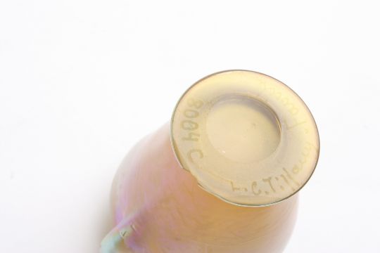 A Louis Comfort Tiffany Favrile iridescent glass vase of urn shaped form with small loop handles, the base signed L.C.Tiffany, Favrile 8004C.Dimensions: 6.5 cm high.Condition report3mm chip to foot.