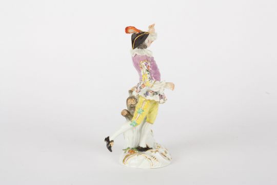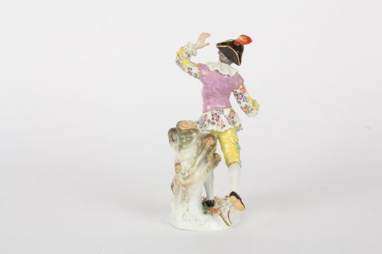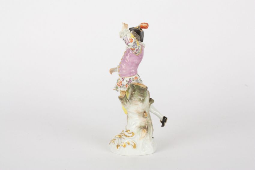 Late 20th century Meissen figure of a dancing shepherd, after Meyer, raised on a rococo base, blue painted cross swords mark, incised and impressed numerals, 17.5 cms highCondition: Good condition