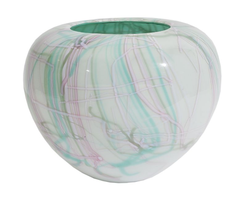 Toots Zynsky (b.1951) for Venini 'Folto' vase opaque glass vase of bulbous form with coloured pink and green swirls, with etched signature zynsky x venini 89, with original sticker, height 19cm Condition: