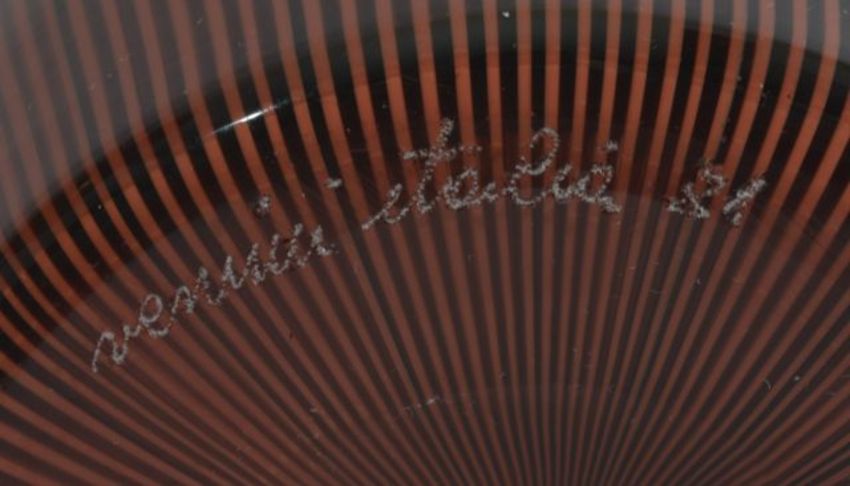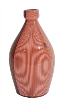 Carlo Scarpa (1906-1978) for Venini 'Tessuti' coral and red vase with caned decoration, signed venini italia 81, with original sticker, 21 cms highCondition: Provenance: From the August Warnecke collecton, Christies