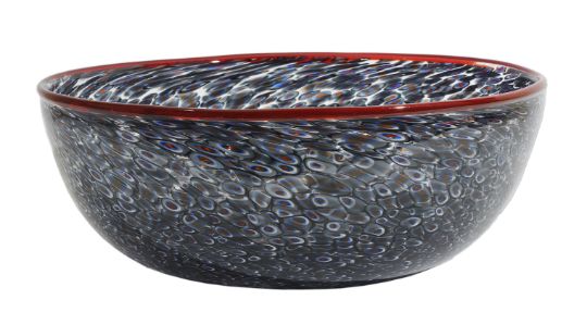Vistosi a murrine glass bowl with red rim, with etched signature to base vistosi and original Murano sticker, 34cm diameter and 13 cm heightCondition: