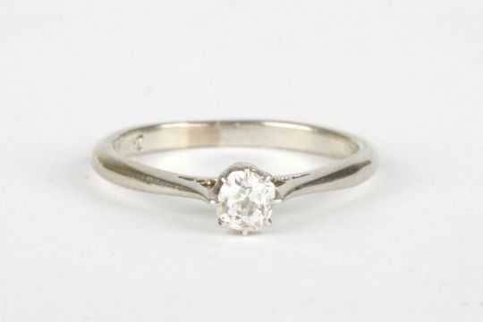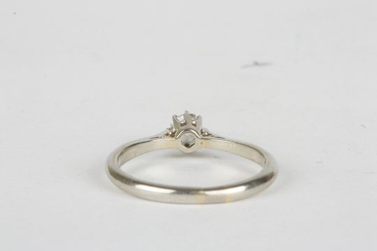 An 18ct white gold and diamond solitaire ring the stone weighing approx. 0.15cts, in a plain white gold mount, Size L.Condition: Good condition