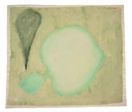 Antal Biro (Hungarian 1907-1990) 'Green Composition', 1952 signed and dated upper right, gouache on paper, with Bergman stamp to verso, 24 x 27.5cmCondition: Provenance: The Bergman Collection