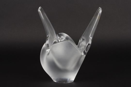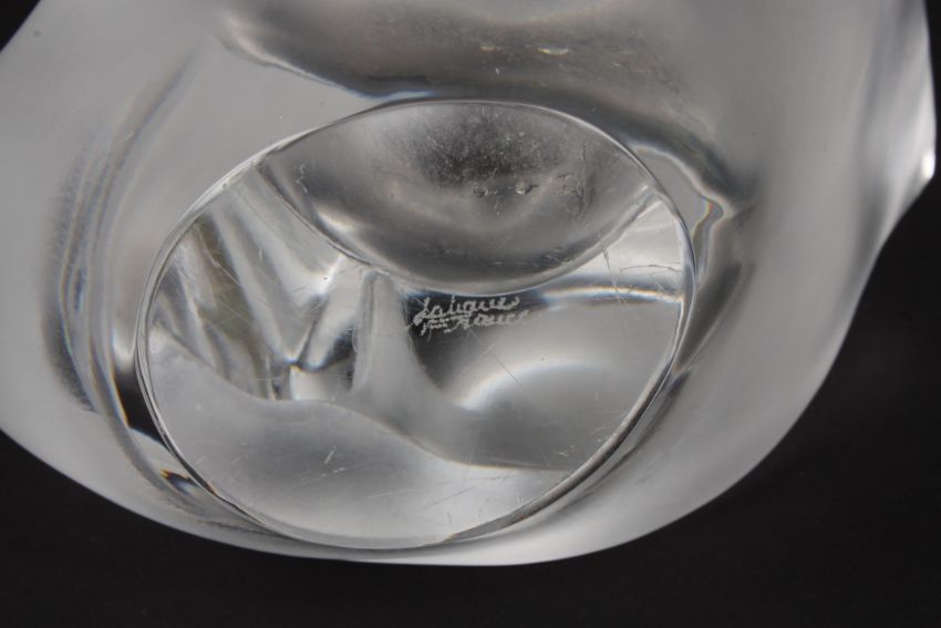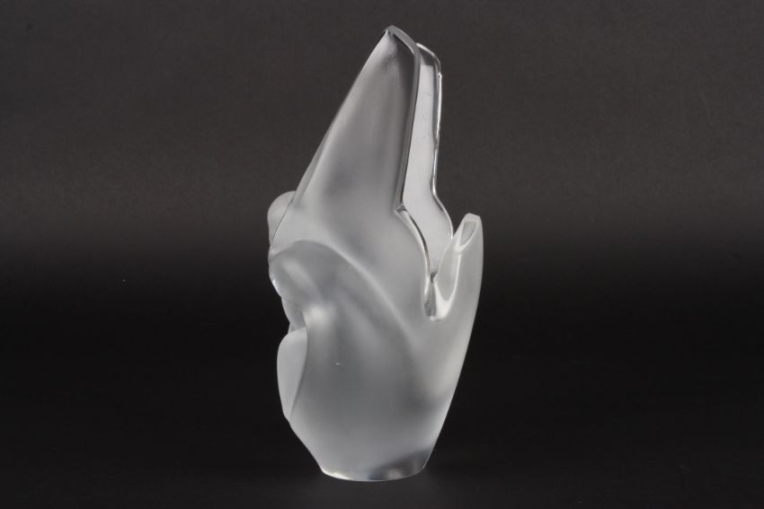 A Lalique frosted glass vase depicting love birds in curled pose with tails raised, signed Lalique, France., 20.5 cm high.Condition: Generally good condition, slight fitting to one edge.