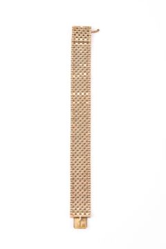 A 9ct gold articulated bracelet of woven design with invisible clasp, weight approx 40g, width 2cm., length 18.5cmCondition:
