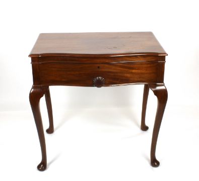 An extensive silver plated canteen of cutlery comprising 12 place settings, in a Mappin & Webb mahogany canteen box and supported on cabriole legs., width 77cm, height 78cm., depth 51cmCondition: