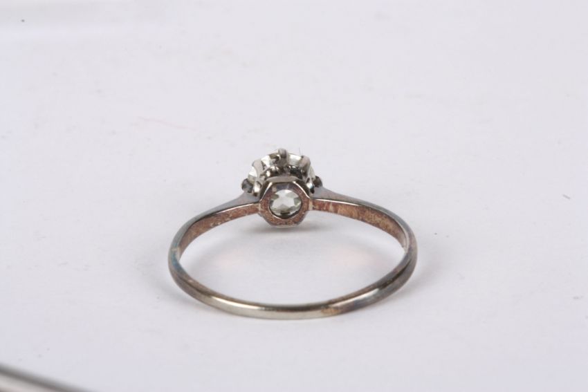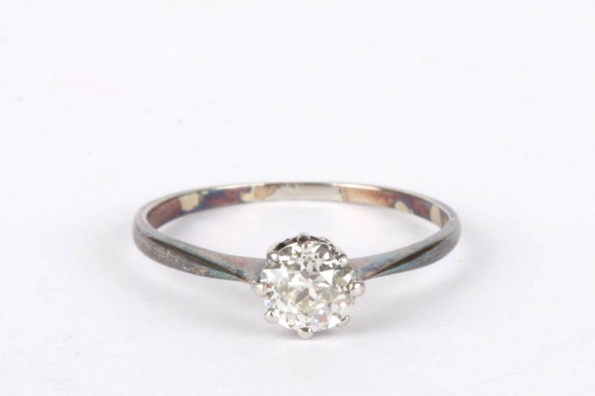 An 18ct white gold and diamond solitaire ring set with diamond measuring approx. 1/2 carat and set in a plain 18ct white gold mount. , Condition: