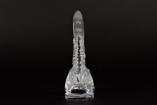 A modern Lalique 'Coq Nain' clear glass car mascot the cockerel with tail raised and resting on a circular base. Signed Lalique, France., 20.5 cm high.Condition: Good condition.