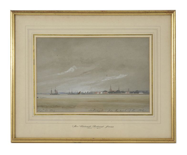 Reverend Calvert Richard Jones (1804-1877) British A collection of six assorted marine watercolours, including scenes of Southampton, Catwater (sic), The Mary of Poole, River Itchen, and Neath Bridge, all signed and dated, c.1821-1830. All framed. Condition: Generally in good condition, some light foxing and fading in places.