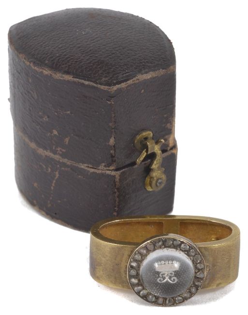 A Georgian rose diamond and coronet sulphide mounted as a scarf ring, the circular sulphide within a rose diamond border. Yellow metal mount. Condition: Later mounted