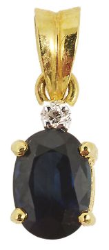 A modern three stone sapphire and diamond set ring and matching pendant. Marked .750 Size ring MCondition: