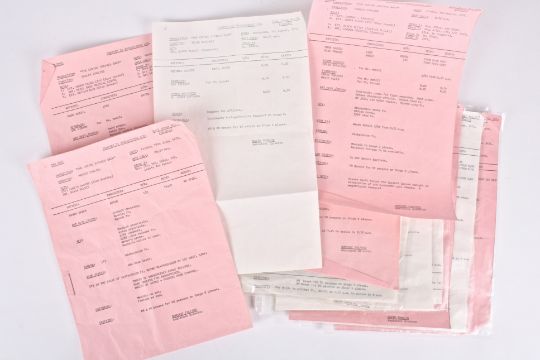 STAR WARS INTEREST: Thirteen original call sheets A4 sized from 'The Empire Strikes Back' film. Call sheet numbers: 92 (dated Tuesday 24th July 1979), 93 (dated Wednesday 25th July 1979), 94 (dated Thursday 26th July 1979), 95 (dated Friday 27th July 1979), 95A (dated Friday 27th July 1979) 96A (dated Monday 30th July 1979), 98 (dated Wednesday 1st August 1979), 98A (dated Wednesday 1st August 1979), 100A (dated Friday 3rd August 1979), 101 (dated Monday 6th August 1979), 101A (dated Monday 6th August 1979), 102 (dated Tuesday 7th August 1979) and 102A (dated Tuesday 7th August 1979). Condition: Fairly good condition although some bending and creasing to sheets.Originally belonging to Stuart Freeborn, the British pioneering movie make-up artist behind Yoda and Chewbacca in the Star Wars films. The current owner was an acquaintance of Mr Freeborn.