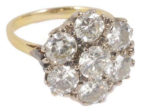 A large seven stone diamond circular cluster dress ring, the stones approx. weight 0.50ct each, the mount marked 18ct Diameter 1.7cms. Ring size MCondition: Total weight of stones approx. 3.00ct